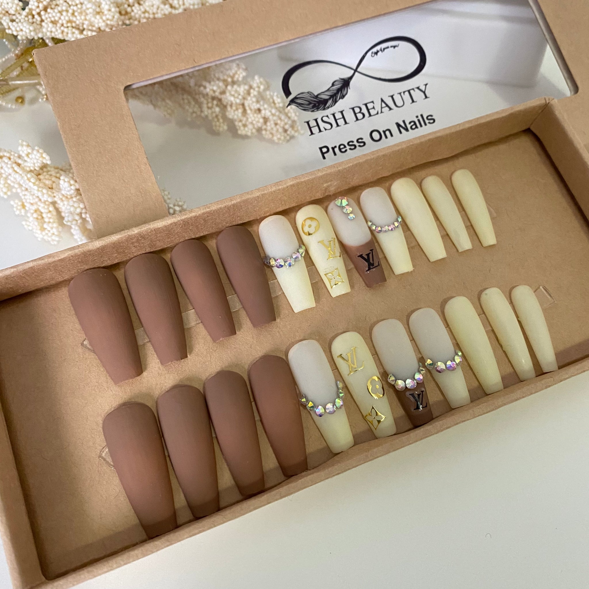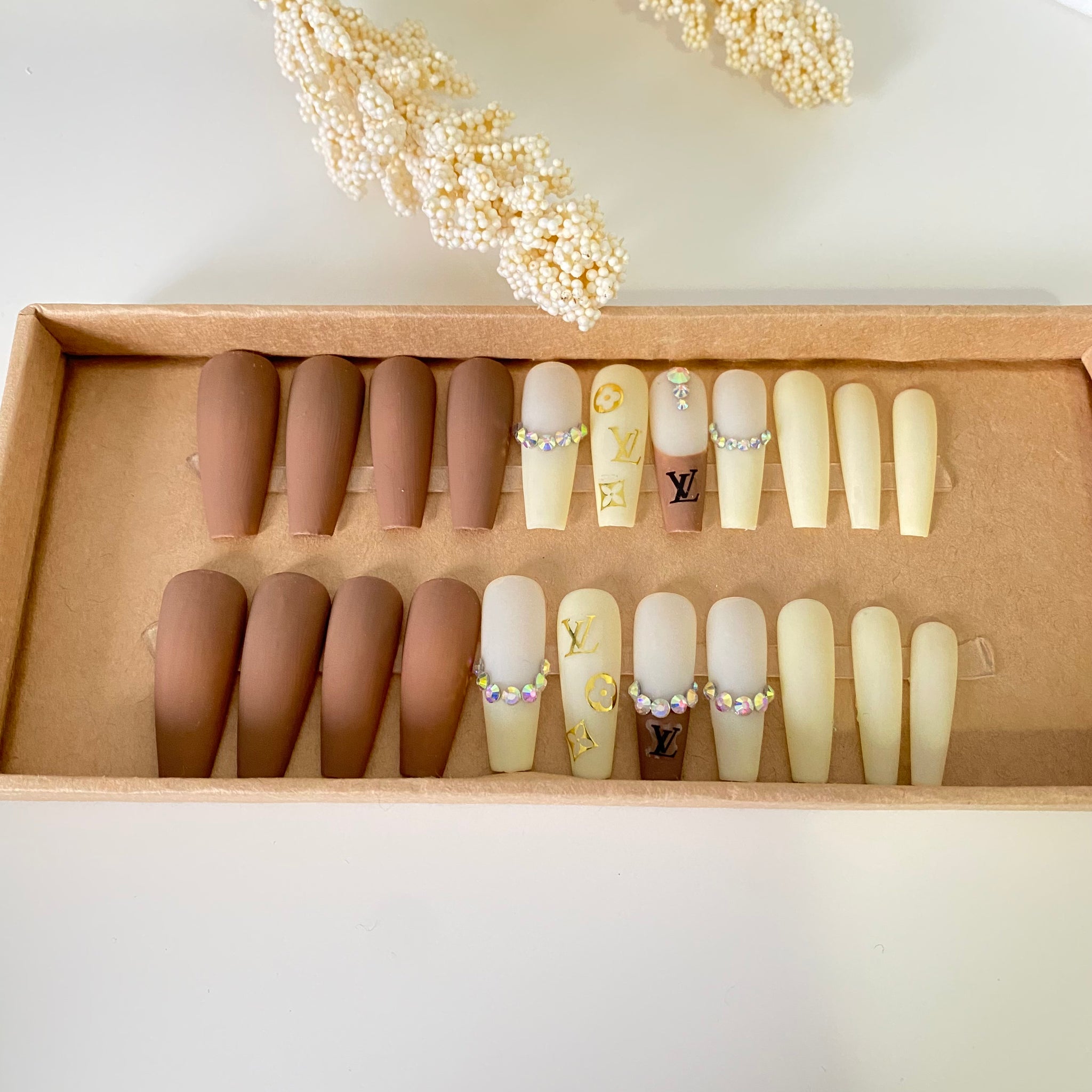 Show off with this beautiful set press on nails. These beauties are carefully handmade with high quality gel polish for extra-long lasting, featuring the look and feel of actual acrylic nails from the salon.